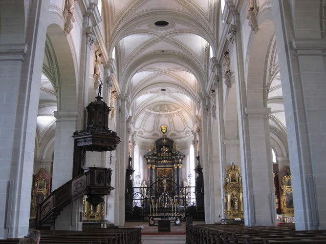 イエズス教会(Jesuitenkirche)は1667年建造で、スイス最古のバロック建築だそうです。 ロイス川ほとりに建つその外観は、とてもエレガントで美しいです。