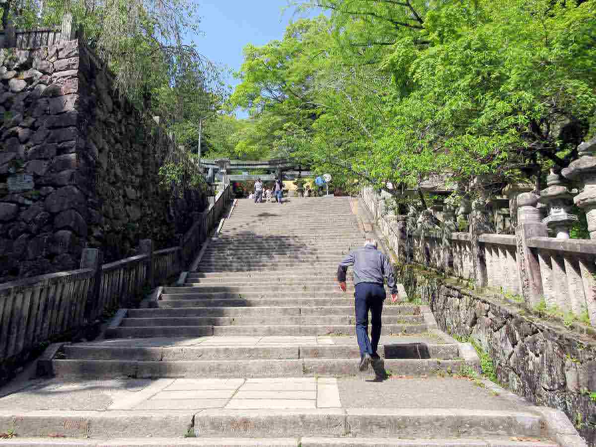 足が少しずつ重くなっていきますが、参道の両側には土産物店が並んでおり雰囲気を楽しみながら上って行くことができます。