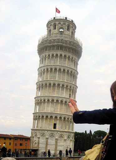 周囲では、斜塔を押したり、支えたり、抱きついたり…と、皆それぞれ斜塔との写真を楽しんでいました。